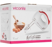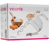 VICONTE VC-366 Миксер Viconte VC-366 350 W, Миксер, мощность 350 W, 5 скоростей работы, двойной набор насадок: два венчика для взбивания яиц и кремов, две насадки для размешивания тяжелого теста, смешивание жидкостей, замешивание теста, приготовление пюре, взбивание сливок
