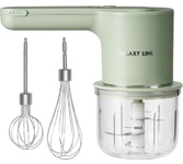GALAXY LINE GL 2234 (30шт) Миксер аккумуляторный мощность 50 Вт, 3 насадки:- насадка-венчик, насадка для взбивания крема, насадка-измельчитель. Пластиковая чаша объемом 300 мл, трехлопастный нож из нержавеющей стали,5 скоростей. Тип аккумулятора: LI-ION е
