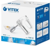 VITEK VT-1426 Мощность 500 Вт Число скоростей 6 Дополнительные режимы турбо Насадки крючки для замешивания теста, венчик для взбивания Количество насадок 4 Материал корпуса пластик Длина сетевого шнура 1.2 м