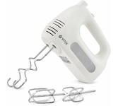 Миксер, максимальная мощность: 350 Вт, 5 скоростей, переключатель скоростей, Режим Турбо, венчики для взбивания/смешивания яиц и крема, крючки для замеса теста, простота в использовании и чистке.