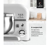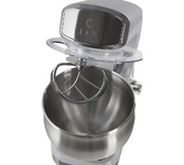 Планетарный миксер, мощность 1800 ватт, мотор повышенной эффективности( 100% медь, металлические шестеренки, чаша с ручкой объемом 5,5 литров, допонительная полипропиленовая чаша 4,5 литра, защитная крышка от брызг, 8 скоростей, импульсный режим, противоскользящие ножки, кабель 1,2 метра.