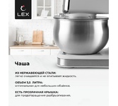 Параметры электросети, В/Гц 220-240/50-60 Мощность, Вт 1600 Цвет Черный матовый Материал чаши Нержавеющая сталь Объем чаши, л 6 Класс защиты II Количество скоростей 8 Размеры изделия, мм 385?232?332 Вес, кг 5,33 Объем и функциональность Технология планетарного размешивания 360° 3в1 – смешивание, взбивание и замешивание теста Высокая мощность Защита от перегрева Прорезиненные ножки Прозрачная крышка от разбрызгивания