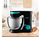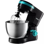 Мощность 1000 Вт. Количество скоростей 6. Импульсный режим есть. Материал корпуса металл. Объем чаши 4 л. Материал чаши нержавеющая сталь. Насадок в комплекте 3 шт. Крюк для теста в комплекте. Лопатка для перемешивания в комплекте. Венчик для взбивания в комплекте. Крышка для чаши в комплекте. Цвет черный/бирюзовый. Размеры (ШхВхГ) 214 х 263 х 291 мм. Вес 3 кг.