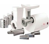 Электромясорубка Мощность: 2400 Вт Насадки: для фарша 7/5/ мм, Функция обратного хода. Большой пластиковый загрузочный лоток. Пластиковый толкатель. Металлический шнек. Нож из высококачественной нержавеющей стали. Прорезиненные ножки. Полностью разборный блок. Защита двигателя от перегрузки. Сеть: 220-240В, 50 Гц