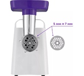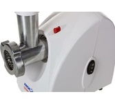 Макс. мощность 1500 Вт, номинальная мощность 230 Вт, производительность — до 100 кг/час, Защита двигателя от перегрузки; 3 вида решеток для получения фарша разной консистенции - с диаметром отверстий 4,9 мм и 7 мм, а также овальными отверстиями; Удобное хранение ножей и решеток; Высокое размещение шнековой камеры; Функция РЕВЕРС для предотвращения наматывания жилок на шнек; Устойчивые нескользящие ножки для фиксации мясорубки на поверхности стола.