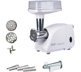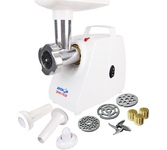 Производительность: 1.2. Количество скоростей: 1. Перфорированный диск для фарша: 2. Функция реверса: есть. Насадка для колбас: в комплекте. Насадка для кеббе: в комплекте. Насадка-терка: отсутствует. Насадка для шинковки: отсутствует. Материал лотка: пластик. Материал корпуса: пластик. Цвет: белый. Мощность: 500. Защита от перегрева: есть. Насадка для кебаба: отсутствует. Насадка для нарезки овощей: отсутствует. Длина сетевого шнура: 1. Толкатель: в комплекте. Прорезиненные ножки: есть. Вес товара: 3. Габариты упаковки (ед) ДхШхВ: 0.33x0.26x0.24. Вес упаковки (ед): 3.7. Гарантия: 12 мес.. Мощность: 1300Вт, при блокировке вала. Размеры (ШхВхГ): 334 х 228 х 153 мм. Количество скоростей: 1. Насадки: для колбас, для кеббе. Мощность: 1300Вт, при блокировке вала. Производительность: 1.2 кг/мин. Функции: реверс, защита от перегрева. Материал лотка: пластик. Материал корпуса: пластик