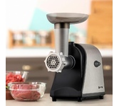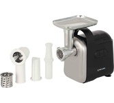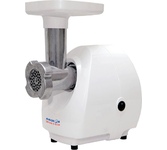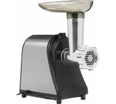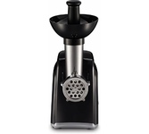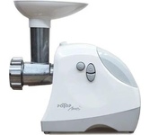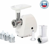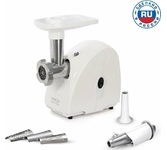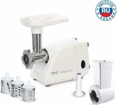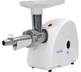 максимальная мощность 1500 Вт, номинальная мощность 230 Вт, производительность — до 100 кг/час комплектуется приставкой — соковыжималкой. Предназначена для получения соков с мякотью из мягких овощей, фруктов, ягод; набивки колбасных изделий. 3 вида решеток для получения фарша разной консистенции - с диаметром отверстий 4,9 мм и 7 мм, а также овальными отверстиями; Удобное хранение ножей и решеток; Высокое размещение шнековой камеры; Устойчивые нескользящие ножки для фиксации мясорубки на поверхности стола; Защита двигателя от перегрузки;