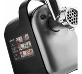 Параметры Максимальная мощность 4500 Вт Номинальная потребляемая мощность 700 Вт Производительность 2,8 кг/мин Диаметр отверстий решеток для измельчения и рубки 4, 8 мм Диаметр насадок для набивки сосисок и колбас 14, 20, 22 мм Описание Мясорубка электрическая предназначена для измельчения вареного или сырого мяса и подобных продуктов, также используется для изготовления колбасок, печенья в бытовых и аналогичных условиях Подходит для обработки любого вида мяса Цвет: нержавеющая сталь/черный Прочный металлический привод шнека увеличивает надежность и долговечность прибора Металлический лоток для продуктов Крестообразный нож из высококачественной нержавеющей стали Три решетки из нержавеющей стали для измельчения и рубки с отверстиями различного диаметра Три насадки для набивки сосисок и колбас Две насадки «КУББЕ» Удобный толкатель Отсек для хранения насадок Противоскользящие резиновые ножки Автоматическое отключение при забивании горловины продуктами Функция РЕВЕРС обеспечивает простоту очистки шнека при забива