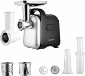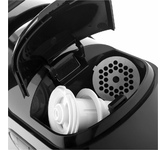 Максимальная мощность 1800 Вт Функция «Реверс» Производительность 1,5 кг/мин 2 диска из нержавеющей стали для крупного и мелкого помола (5 мм и 7 мм) Насадки для терки, резки, шинковки Насадки для приготовления колбас Насадка «Кеббе» Толкатель для продуктов Прорезиненные противоскользящие ножки Защита от перегрева Защита двигателя от перегрузки Номинальная мощность 500 Вт Максимальный уровень шума 80 дБ Электропитание 220-240 В, 50 Гц
