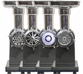 Высокая производительность: до 3,5 кг фарша в минуту Сверх прочный корпус из литого алюминия Стальная система крепления Цифровой LED-дисплей Управление Smart-джойстиком DMP + Двойная защита двигателя (от перегрева, от перегрузки) Функция реверса Высококачественный нож с 3мя дисками из нержавеющей стали: 3 мм, 5 мм, 7 мм, + система очистки ножей 3 насадки для приготовления колбас разных диаметров и насадка для приготовления кебаба Технология Silence Balance (менее 72 дБ) Овощерезка с 3мя барабанами (Крупная, Мелкая, Шинковка) Мощный мотор 2 500 Вт