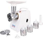 Мощность, Вт : 300 * Max. мощность, Вт: 2000 * Вес, кг: 3.6 * Производительность, кг/час: 35 * Режим работы: продолжительный * В комплекте две решетки и удобный отсек для принадлежностей * Насадка - большая овощерезка *