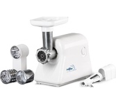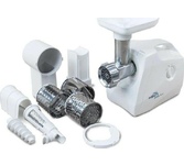 Номинальная потребляемая мощность 160 Вт * Габаритные размеры (ШxВxГ) 25,6/15,25/ 18,25 см * Производительность 0,5 кг/мин * Мощность 600 Вт * Вес 3,9 кг * Цвет Белый * Защита двигателя от перегрузки; Экономия электроэнергии без ущерба качеству; Отсек для хранения шнура питания; 2 вида решеток для получения фарша разной консистенции - с диаметром отверстий 4,9 мм и 7 мм; Высокое размещение шнековой камеры; Устойчивые нескользящие ножки для фиксации мясорубки на поверхности стола;