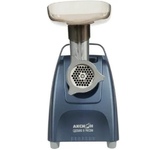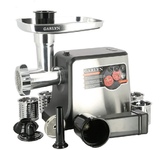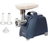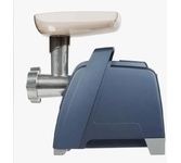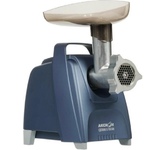 Максимальная мощность - 2000 Вт. Максимальная производительность – 4 кг/мин. В комплекте: нож с саблевидной режущей кромкой из нержавеющей стали; 1 решетка увеличенной толщины из нержавеющей стали с отверстиями O 4,9 мм; 1 запасной металлический колпа