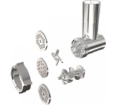 Макс. мощность 600Вт. Производительность 40кг/ч. 3 скорости. Сервисная функция «Момент». 2 решётки с отверстиями диаметром 4,4 мм,7 мм. 5 запасных переходников в комплекте. Надежный саблевидный нож позволяет приготовить пышный и нежный фарш, с минимальной потерей сока из волокон.