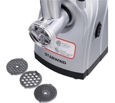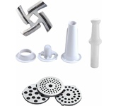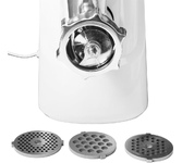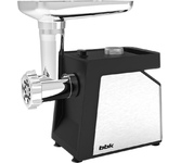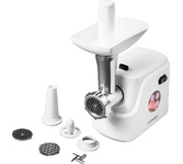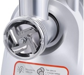 Номинальная потребляемая мощность 2000 Вт, Производительность 1,7 кг/мин, Электромясорубка предназначена для измельчения мяса и других видов продуктов, также используется для изготовления колбасок, лапши, спагетти, печенья, сока из мягких фруктов и овощей, Подходит для обработки любого вида мяса, Цвет: белый с красным , Прочный металлический шнек, Металлический привод шнека увеличивает надежность и долговечность прибора, Крестообразный нож, , Насадка для томатов, Две насадки «КУББЕ», Насадка для набивки колбасок, Удобный толкатель, Противоскользящие прорезиненные ножки, Функция РЕВЕРС обеспечивает простоту очистки шнека при забивании продуктами, Автоматическое отключение при забивании горловины продуктами ,Система защиты двигателя от перегрева.