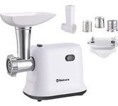 Мощность (Вт): 2000; Напряжение (В): 230; Насадка для набивки колбас: есть; Насадка-соковыжималка: есть; Реверс: Есть; Решетки: 2, средняя, крупная.; Частота (Гц): 50; Защита двигателя от перегрузки.Лезвие: нержавеющая сталь;