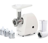 Мясорубка электрическая, 1500 Вт, функция реверс, корпус из эко-пластика, пластиковый лоток для продуктов и толкатель, металл. шнек, нож из нерж.стали, металл диск для измельчения (5 мм), отключение при перегреве.3 насадки-тёрки. соковыжималка для томатов.