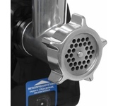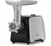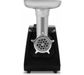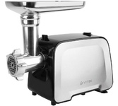 Мясорубка, максимальная мощность: 1800Вт, функция реверс, нож из нержавеющей стали, 2 решетки в комплекте: 5мм, 7мм, пластиковый лоток, прорезиненные ножки, производительность (макс): 2 кг/мин, насадки для приготовления колбасок и кеббе, механический фиксатор блока мясорубки, цвет: черный