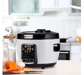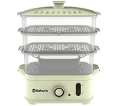 800Вт, многофункциональная электрическая пароварка (готовит на пару, тушит, жарит, варит, стерилизует), регулируемая мощность 400Вт /800Вт, 3 паровые корзины из нержавеющей стали, общий объем 8л, чаша с антипригарным покрытием 1,2л, двухслойный корпус: металл + пластик, диаметр внутренний 22,5см, внешний – 23см, высота 1 корзины: 6.5 см, глубина чаши: 9 см, крышка из закаленного стекла с паровыводящим отверстием, механическое управление, защита от перегрева, цвет корпуса: белый молочный. Длина шнура: 0,8 м. Размеры прибора: 37*29,5см