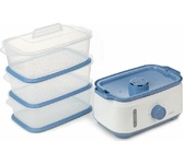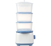 Мощность 800 Вт. Общий объем 9 л. Стальной корпус. 3 чаши для приготовления. Быстрое парообразование. Все пластиковые элементы не содержат BPA. Механический тип управления. Чаша рисоварка. Таймер 60 мин. Индикатор работы.