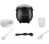 ARESA AR-2010 Мощность: 790-930 Вт Съёмная чаша (объём 5 л) 36 программ "Рис, Суп, На пару, Быстрая готовка, Тушеное мясо, Гуляш, Плов, Тушение, Жарка, Бобовые, Фрикассе, Фондю, Йогурт, Десерт, Подогрев молока, Варенье, Стейк, Борщ, Выпечка, Запекание, Подогрев, Паста, Томление, Тушеная рыба, Каша, Фритюр, Гречка, Пельмени, Стерилизация, Запеченый картофель, Молочная каша, Овощи, Овсянка, Бисквит, Жареное мясо, Пицца " Программа «Поддержание температуры» Программа «Мультиповар» (при температуре 100°С задаётся время от 2 мин до 15 часов) Регулировка времени и температуры приготовления Функция отложенного старта (установка таймера до 24 ч) LED дисплей Защита от перегрева Прочный корпус из нержавеющей стали Ручка для переноски