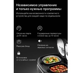 Мощность 1250 Вт Объем чаши 4 л Индукционный нагрев Антипригарное покрытие чаши Daikin Сферическая многослойная чаша изготовлена из нержавеющей стали и алюминия 17 автоматических программ приготовления: жарка/фритюр, запекание, разогрев, суп, йогурт, рагу, варка, плов, молочная каша, на пару, паста, мясо, томление, пицца, выпечка, варенье, мультиповар. Сенсорное управление Многофункциональный LED-дисплей Съемная крышка и клапан выпуска пара Корпус из высококачественного пластика Таймер 24 часа, позволяющий приготовить блюда к назначенному сроку Поддержание температуры 12 часов Звуковой сигнал по окончании работы Чаша для приготовления на пару, мерный стакан, ложка в комплекте Чашу и аксессуары можно мыть в посудомоечной машине