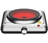 Плитка настольная с инфракрасным нагревом, 1 стеклокерамическая конфорка, мощность 1200 Вт, диаметр конфорки 16.5 см, размер прибора - 257*290*75мм, максимальная температура нагрева 510-530С, максимальная нагрузка на конфорку 8кг, механическое управление, световой индикатор, шнур 0,8 м, цвет: нерж.сталь / черный