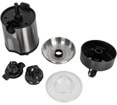 Соковыжималка для цитрусовых, Мощность 85 Вт., 2 сменные насадки-конуса для фруктов разного размера, Автоматическая активация вращения конуса соковыжималки, Фильтр из нержавеющей стали пригодный для мытья в посудомоечной машине, Корпус из нержавеющей ста