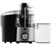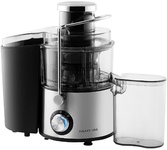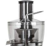 Соковыжималка центробежная. Мощность 1500 Вт, питание 220-240В, 50Гц, металлический корпус и фильтр, объем резервуара сока 1л., 2 скорости + импульный режим, широкая загрузочная горловина - 75мм, объем контейнера для жмыха 1л, функция "Капля-стоп, прорезиненные ножки, защита от перегрева и перегрузки, блокировка двигателя при открытой крышке, легкая очистка