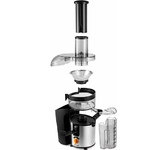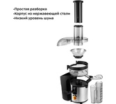 Соковыжималка шнековая, Мощность 200 Вт, Холодный отжим, Сохраняет до 85% сока, Можно отжимать любые овощи, фрукты, ягоды, зелень и корнеплоды, Сверхширокое загрузочное отверстие 75 мм, Система капля-стоп, Функция реверса, До 65 об/мин, Благодаря низким оборотам сок не нагревается и сохраняет все свои полезные свойства и витамины, Отсутствие термической обработки и окисления в процессе отжима позволяет сохранить до 100% витаминов и минералов в соке, Кувшин для сока 0.8 л, Резервуар для жмыха 0.6 л, Cетка из нержавеющей стали, Автоматический выброс мякоти, Система прямой подачи сока, Защита от перегрузки и перегрева, Защита от случайного включения, Низкий уровень шума, Нескользящие ножки, Длина шнура электропитания 0.9 м, Напряжение сети 220-240 В, 50 Гц