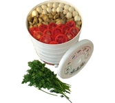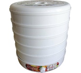 Диаметр, мм 330 Объем - 19 л Количество уровней: 5 Материал корпуса: пластик, полипропилен Нагревательный элемент: ТЭН Кнопка включения : есть Мощность нагревательного элемента 125 Вт Крышка с клапаном регулировки циркуляции воздуха есть Упаковка: термоусадка