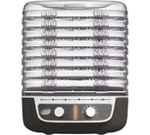 Вращение поддонов для оптимальной циркуляции воздуха Максимальная мощность 250 Вт Объем 9 литров 5 прозрачных поддонов Размер поддона 32x32 см Регулировка температуры (от 35 до 70 °С)