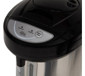 Термопот электрический, Мощность 600Вт, Объем 3 литра, Способ подачи воды - механический, электрический, касанием чашкой, Защита от перегрева, Защита от перепада напряжения, Функция повторного кипячения.