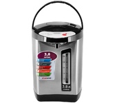 Термопот мкость 4 литра, - оптимальный объем емкости, чтобы вскипятить горячий чай для всей семьи. Мощность 900 Вт, мощность в режиме поддержания температуры 35 Вт, индикатор уровня воды. по индикатору легко ориентироваться в количестве налитой в термопот воды, 3 способа подачи воды - нажатие чашкой на клапан, электрическая помпа, ручная помпа, поддержание температуры, функция блокировки ручной помпы,трежим повторного кипячения . Температура автоматического подогрева воды ниже температуры кипения. При необходимости чайник-термос позволяет быстро довести воду до кипения. Повторное кипячение, помогает очистить воду от нежелательной хлорки. После закипания воды чайник-термос автоматически переключится в режим поддержания температуры, и сохранит воду горячей на долгое время, защита от включения без воды - защищает прибор от включения без воды, тем самым продлевая срок службы прибора, защита от перегрева, внутренняя колба из нержавеющей стали AISI 304, съемный шнур - шнур питания при необходимости легко снимается,