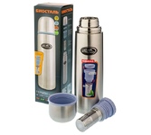 Термос Объем 1л.Высота 30,5см.Диаметр 8,5см.Вес 690гр.Время сохранения тепла 19ч. Термос предназначен для хранения горячих и холодных напитков (чая, кофе и пр.) и укомплектован двумя пробками. Пробка без кнопки надёжна в эксплуатации и позволяет дольше сохранять нужную температуру напитка. Пробка с кнопкой удобна в использовании и даёт возможность налить напиток, не откручивая пробку.