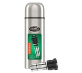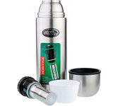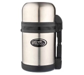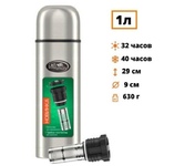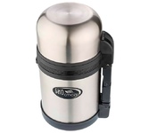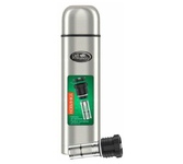 Термос универсальный 1.0 л. С удобной ручкой и ремешком для переноски. С крышкой-чашкой и дополнительной пластиковой чашкой. Изготовлен из высококачественной нерж. стали.