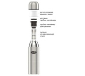 Объем 0,75л * Сохранение тепла до 28 часов, Холода до 36 часов * Вес 510гр * Термос с узким горлом относится к серии «ОХОТА» премиум-класса. Термосы укомплектованы пробкой с емкостью для чая или трав, а также специальным удобным ситечком для заваривания из хирургической стали 18/8. Даже самые мелкие листья останутся в ситечке, созданном с применением лазерной перфорации, и вы сможете насладиться чистым и вкусным напитком. Диаметр отверстия в ситечке – всего 0,5 мм! Термосы этой серии вобрали в себя самые передовые энергосберегающие технологии и отличаются применением более совершенных термоизоляционных материалов, а так же новейшей технологией создания вакуума. Термос предназначен для хранения горячих и холодных напитков: чая, кофе и пр.
