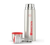Термос «Биосталь-Авто» с узкой горловиной и прямой крышкой, 2 пробки (пробка без кнопки, пробка с кнопкой) 1,2л.Лёгкий и прочный, Сохраняет напитки горячими или холодными долгое время, Изготовлен из высококачественной нержавеющей стали, Корпус покрыт защитным прозрачным лаком, С крышкой-чашкой и дополнительной пластиковой чашкой, Этикетка легко снимается и не оставляет следов