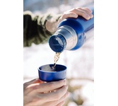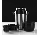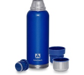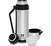 Термос с узким горлом и глухой пробкой, 2 накручивающиеся чашки в комплекте. Молотковая эмаль на корпусе дополнительно защищает термос от сколов и царапин. Объем 0,9 л.