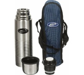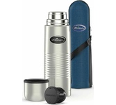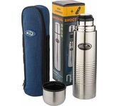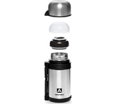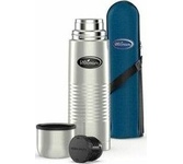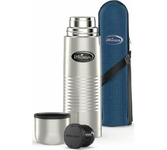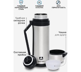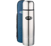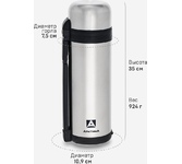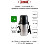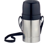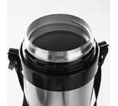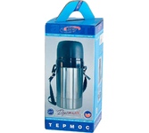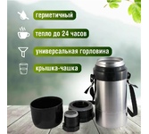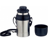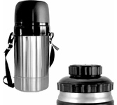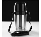Термос универсальный "Дорожный" 1с671, 1 л, 43 °С, 24 ч, на ремне Термос «Дорожный» создан для путешественников, дачников, рабочих, водителей, школьников и студентов – людей, для которых важно иметь под рукой горячее домашнее питание или бодрящий напиток, а летом положить мороженое и налить холодный освежающий морс. Особенности: Наливается напиток в крышку-чашку, достаточно повернуть резьбовую пробку вполоборота. Крышку-чашку используют в качестве чашки для первых или вторых блюд.