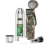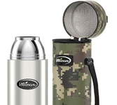Термос из нержавеющей стали 18/8 (AISI 304) с ситечком для заваривания и пробкой-контейнером. Пробка с дополнительной изоляцией и функцией «термоконтроль» позволяет наливать напитки без полного откручивания пробки под любым углом. Ситечко из высококачественной нержавеющей стали 18/8. Дополнительная чашка из прочного пищевого пластика. Термочехол из прочной камуфляжной ткани защищает термос от повреждений и повышает его термозащиту.