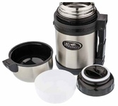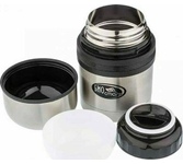 Объем 2,0 л. Материал - Нержавеющая сталь, Пластмасса. Особенности - Двойные стенки, Ложка и вилка в комплекте, Три контейнера для продуктов