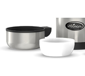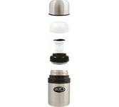 Универсальный термос подходит для напитков и еды благодаря специально сконструированной универсальной пробке. Термос изготовлен из высококачественной нержавеющей стали 18/8 (AISI 304). Вторая чашка из прочного пищевого пластика на 200 мл.