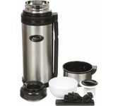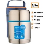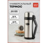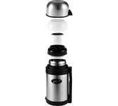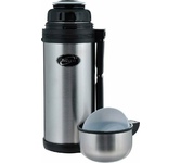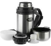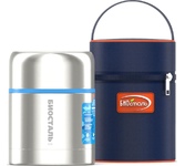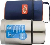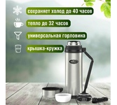 Термос с широкой горловиной, суповой объем: 1 л корпус из стали сохраняет тепло до 16 ч особенности: вакуумный, крышка-чашка чехол вес: 750 г