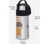 объем 1,4 литра высота 31,5 см диаметр 11 см размер упаковки 12,5 см х 12,5 см х 32см время сохранение тепла 18 часов