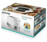 GORENJE T850WE Тостер, Материал: Пластик + металл, Цвет: Белый, Мощность нагревателя: 720 Вт, Мощность подключения: 850 Вт, Функция разморозки, Функция подогрева, Количество режимов нагрева: 7, Рычаг для извлечения тостов, Автоматическое поднятие тостов, Управление Управление Включение нажатием на кнопку Технические особенности Длина кабеля 82 см Доп. опции тостера Выдвижной поддон для крошек; Подогрев хлеба; функция разморозки Индикация тостера Индикатор работы оранжевый Мощность устройства 720 - 850 Вт Дополнительная информация Вес товара без упаковки (г) 1200 г Вес товара с упаковкой (г) 1800 г Высота предмета 18 см Высота упаковки 19.6 см Глубина предмета 16.7 см Глубина упаковки 16.4 см Материал корпуса пластик + металл Ширина предмета 30.7 см Ширина упаковки 34.2 см
