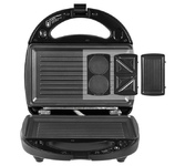 Многофункциональный прибор для выпечки 3 в 1. 3 пары съёмных панелей: сэндвич, гриль, венская вафля (Размер панелей подходит для приготовления 2х порций). Регулировка температуры от 90 до 250 градусов для приготовления разнообразных продуктов. Антипригарное покрытие EcoDeff позволит использовать меньше масла. 2 индикатора работы. Мощность 2 000 Вт, Напряжение 220-240 В, 50/60 Гц.