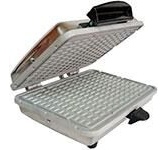 Тип - электровафельница Характеристики: Мощность: 800 Вт Тип вафель: прямоугольные тонкие Количество вафель: 1 шт Теплоизолированные ручки Материал корпуса: металл Антипригарное покрытие Длина сетевого шнура: 1.5м Цвет: серебристый