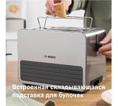 Тостер Caso Selection T2 одновременно готовит два ломтика поджаренного хлеба. В комплекте есть решётка для подогрева булочек. НЕВЕРОЯТНО ВКУСНО Хлеб автоматически центрируется при опускании в слоты. За счёт этого он равномерно прожаривается - наслаждайтесь! ЛЕГКО УПРАВЛЯТЬ Поворотный диск с дисплеем обеспечивает полный контроль над настройками и режимами. Выберите тот уровень нагрева, который считаете оптимальным, чтобы получить тосты, которые вам нравятся: чуть подрумяненные или с золотистой хрустящей корочкой. ПРОСТО УХАЖИВАТЬ Для крошек есть поддон. Он съёмный: достаньте его, вытряхните содержимое, а затем установите его на место. Технические данные: Электропитание Потребляемая мощность: 230 Вт Длина сетевого шнура: 0.8 м Количество отсеков: 2 Вместимость прибора: 2 тоста Автоматическое центрирование: да Контроль степени прожарки тоста: да Тип управления: механич./электронный Подсветка кнопок управления: да Режим "подогрев": да Режим "размораживание": да Дисплей: цифровой дисплей Индикация Включения: да Ин