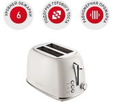 Тип тостер. Мощность 970 Вт. Кол-во отделений тостера 2. Кол-во изделий 2. Степеней обжаривания 5. Управление плавная регулировка. Функции и возможности автоцентрирование, подогрев, размораживание, высокий подъем, защита от перегрева. Насадки решетка для подогрева булочек. Поддон для крошек. Отсек для шнура. Материал корпуса сталь.